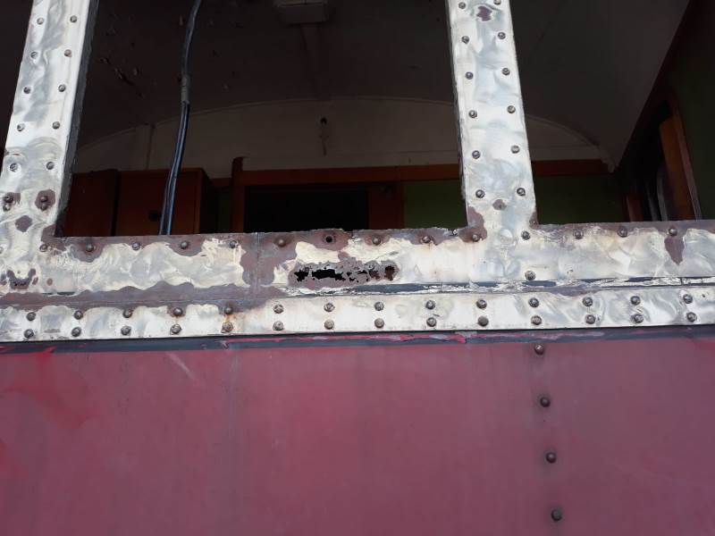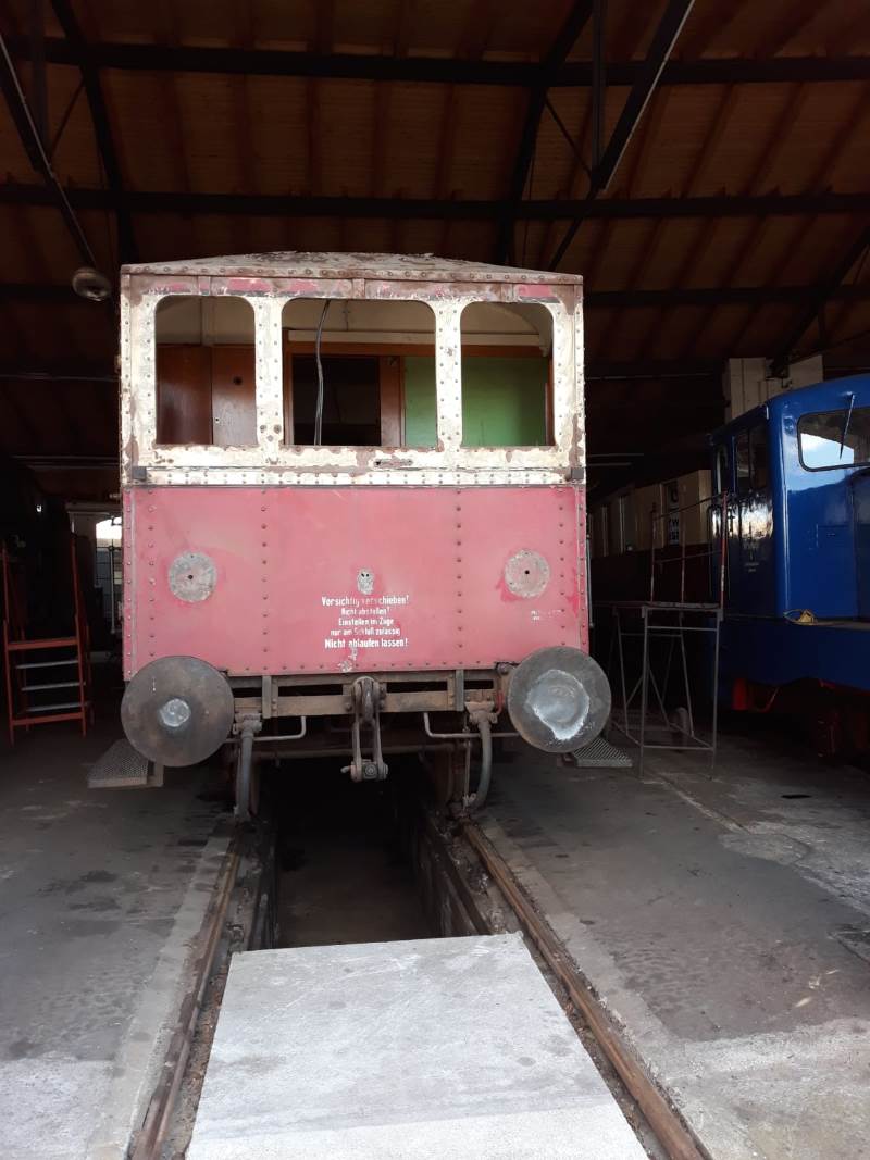 Mehr Arbeit als geplant bereitet uns derzeit der Beiwagen 190 851, der uns vor wenigen Wochen aus Berlin erreicht hat. Die Stirnfronten sind leider ziemlich von Wind und Wetter gezeichnet. Der Rostfraß hat inzwischen eingesetzt und muss behoben werden.