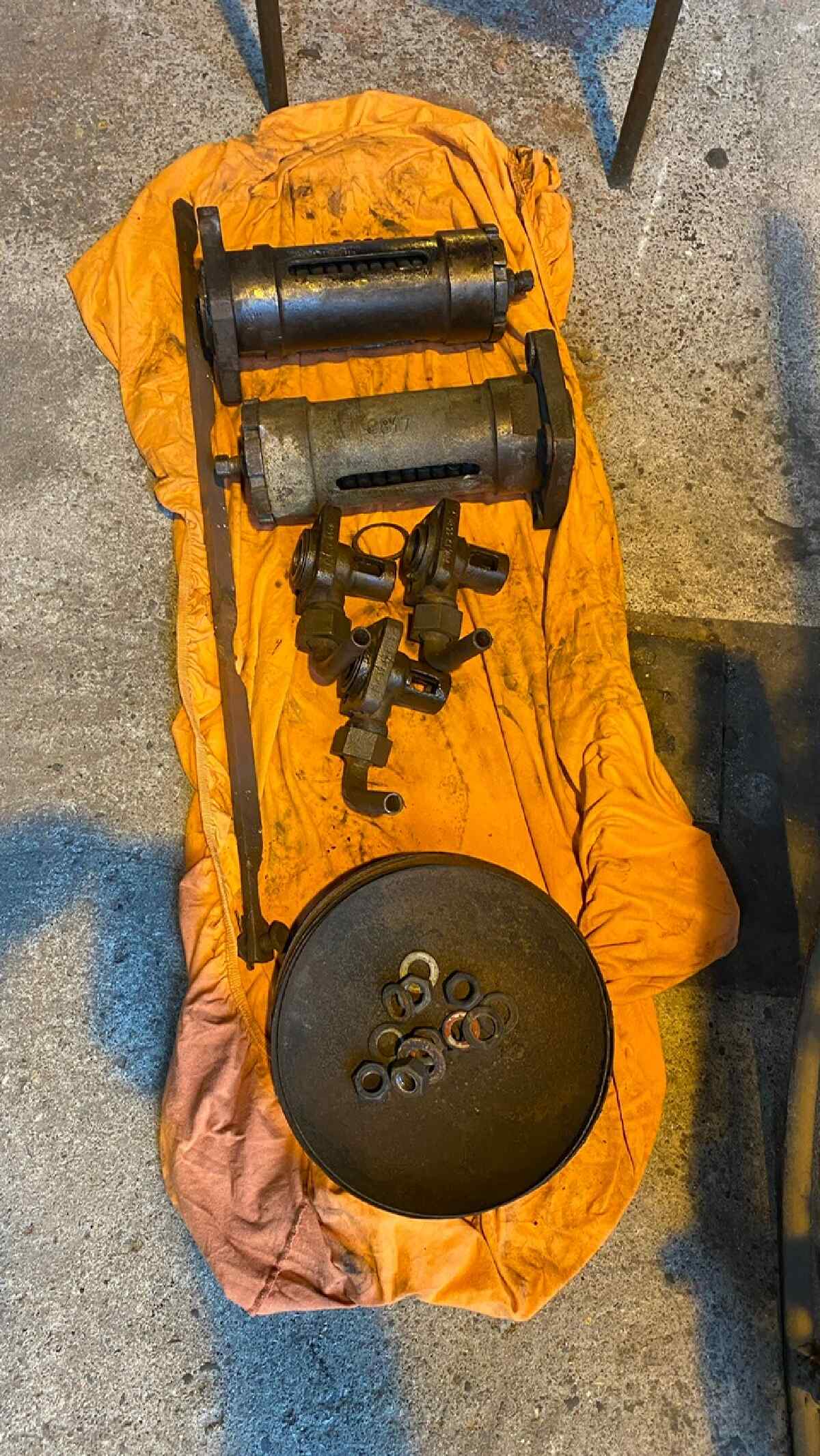 Außerdem haben wir die Entwässerungsventile und Sicherheitsventile der Antriebszylinder ausgebaut. Die einen dienen dem Ablassen von Kondenswasser in den Dampfzylindern. Die anderen dem Notablass, wenn sich zu viel Kondenswasser in den Zylindern angesammelt hat und es die Bewegung der Kolben so stark gegen die Zylinderdeckel drückt, dass diese bersten können. Wasser lässt sich ja bekanntlich nicht komprimieren.