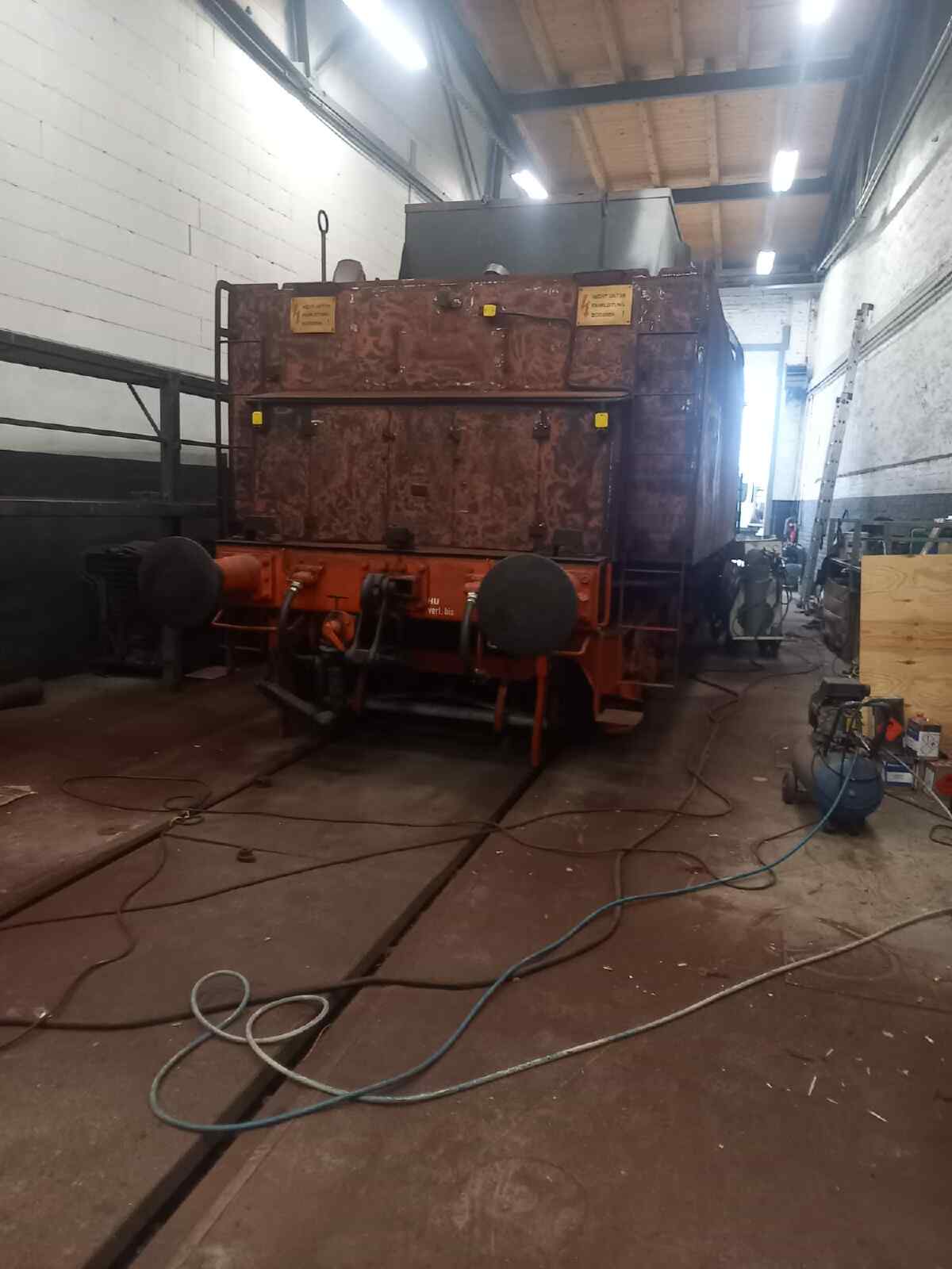 Auch die Arbeiten am Tender gehen weiter. Nachdem nun alle Metallarbeiten im Inneren des Tenders beendet sind, konnten wir uns der Beschichtung des Wasserkastens widmen. Er hat ein Fassungsvermögen von 26 Kubikmetern. Wir haben eine spezielle Farbe aufgetragen, die die weitere Korrosion verhindern oder zumindest verlangsamen soll.