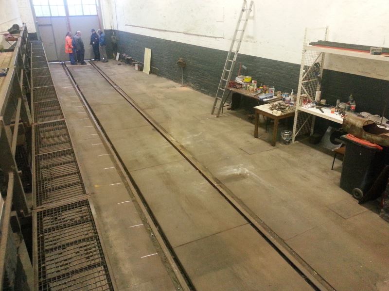 Hier müssen zunächst die Betonplatten zwischen den Schienen abgehoben werden. Danach können die Schienen herausgenommen und die darunter liegenden Schwellen entfernt werden, die inzwischen recht marode sind. Diese werden daher durch neue ersetzt. Danach können die Schienen wieder verlegt und die Betonplatten eingesetzt werden. Der Verein hofft, die Arbeiten bis zum Frühjahr abschließen zu können. Und wer weiß, bestimmt findet sich bald ein neues Exponat. Immerhin ist die Nachfrage nach geschützten Abstellplätzen in der Eisenbahnszene groß.