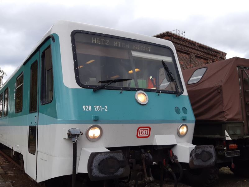 Das Museum Historischer Lokschuppen Wittenberge ist um eine Attraktion reicher. In der Nacht zum 17.12.2019 erreichte der Beiwagen 190 851-6 seinen neuen Standort in Wittenberge. Er blickt auf eine bewegte Geschichte zurück: Das Fahrzeug wurde 1927 bei der Firma Wegmann als 2-achsiger Dieseltriebwagen „VT 804“ gebaut. Die damalige Deutsche Reichsbahn Gesellschaft hatte insgesamt vier Stück dieses Typs erworben, um damit einen wirtschaftlicheren Betrieb auf Nebenbahnen zu testen. Zwei Stück davon verblieben nach dem Krieg in der sowjetischen Besatzungszone. 1951 wurde der Motor unseres Fahrzeugs entfernt und die Deutsche Reichsbahn der DDR setzte ihn fortan als Beiwagen unter der Nummer VB 140 602 ein, unter anderem auf der Strecke Rövershagen – Graal-Müritz. 1960 bis 1975 kam er auf der Prignitzer Kreisringbahn zum Einsatz, bis diese stillgelegt wurde. 1977 übernahm die Rbd Berlin den Wagen und diente dort fortan als Personal- und Bauzugwagen. 1988 übergab man ihn an das Deutsche Technikmuseum Berlin, wo er im Depot für Kommunaltechnik an der Monumentenstraße abgestellt wurde. Dort war er ab und zu für die Öffentlichkeit zugänglich, zuletzt im September 2019. Da die Abstellmöglichkeiten in der Monumentenhalle inzwischen ausgeschöpft sind und sich gerade ein Kontakt zwischen unseren beiden Museen entwickelte, ergab sich die Möglichkeit eines Transfers. Da offenbar auch das Konzept des Historischen Lokschuppens Wittenberge die Verantwortlichen des Technikmuseums überzeugte, wurde eine Übergabe vereinbart. Damit ist es gelungen, das vermutlich letzte existierende Fahrzeug der Perleberger Kreisringbahn und damit ein wertvolles Stück Prignitzer Eisenbahngeschichte in die Region zurückzuholen. Wir danken dem Technikmuseum sehr herzlich dafür! Danken möchten wir auch den Spezialisten der Eisenbahngesellschaft Potsdam, die uns den Wagen am 16./17.12.2019 von Berlin nach Wittenberge überführten. Die Aktiven des Historischen Lokschuppens Wittenberge werden den Wagen nun genauer untersuchen und ein Aufarbeitungskonzept erstellen. Wer uns dabei unterstützen möchte, finanziell oder tatkräftig, ist herzlich willkommen. Vielleicht gibt es auch noch jemanden, der Unterlagen über das Fahrzeug besitzt. Über Kopien oder Originale freuen wir uns sehr.