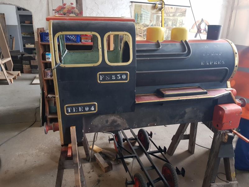 Eher durch Zufall ist dem Verein auch eine Kindereisenbahn in die Hände gefallen. Die Lokomotive befindet sich derzeit in „Hauptuntersuchung“.