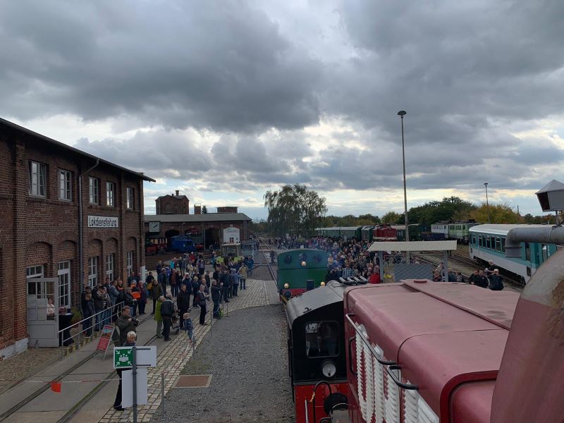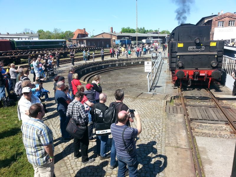 Und die Gäste haben Spaß an diesem Tag. Der 12-jährige Elias aus Glinde bei Hamburg ist mit seinen Eltern hier und ist ganz begeistert. „Wir haben die Dampflokfahrt mitgemacht, und der Lokführer hat uns ganz viel erklärt“, erzählt er freudig. „Mein Opa war auch bei der Bahn, da liegt es nahe, dass man sich dafür interessiert.“ Das meint auch ein Besucher aus Berlin. „Mein Vater war auch Lokführer, das ist genetisch“, erzählt er schmunzelnd. Er ist mit seiner Frau zu Besuch in Bad Wilsnack und hat dort zufällig eine Dampflok vorbeifahren sehen. „Wir wussten am Freitag noch nicht, dass wir heute hier sind.“ Aber nicht jeder Besucher ist ein Eisenbahnfan. Ein anderer Gast aus Berlin berichtet, sein kleiner Sohn habe den Rauch der Loks gesehen. Daraufhin hat der Vater im Internet gesucht, wo es hier Dampfloks gibt. „Wir haben einfach mal reingeschaut und finden es wirklich interessant hier.“